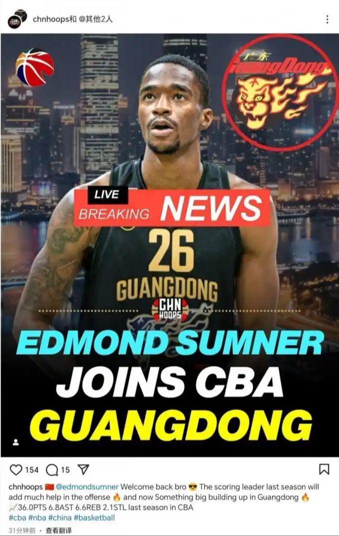 对于现阶段资金链极为紧张的四川男篮来说,如今最值钱的就是萨姆纳的优先续约权。此前据相关媒体透露,四川向萨姆纳的优先续约权要价150万美金,也就是差不多1000多万人民币。而在昨晚,萨姆纳则是在个人社媒转载了媒体人chnhoops宣布自己加盟广东的动态,但随后这则动态却被删除。
